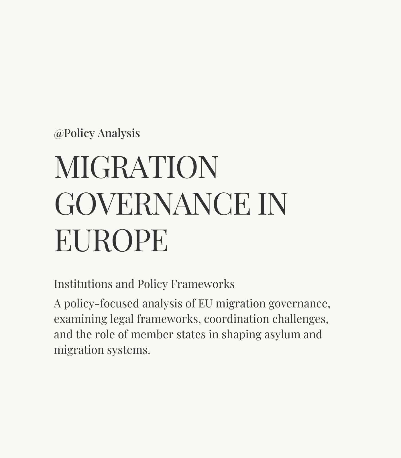 This project explores the structure and evolution of migration governance within the European Union. It compares asylum systems, institutional roles, and policy coordination mechanisms, highlighting differences in national implementation and supranational oversight.